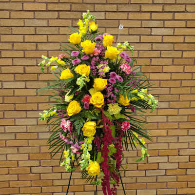 Every standing spray take on a life of its own, as they are personalized for each recipients service. Please call us direct to arrange this lovely tribute